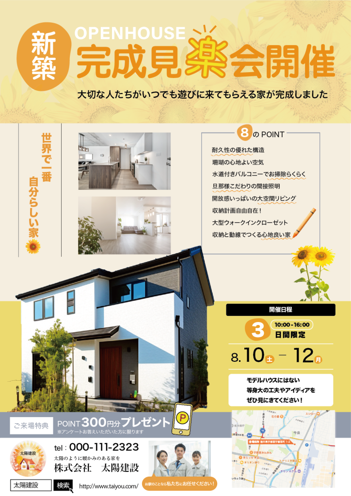 依頼内容:オープンハウスをするので楽しい雰囲気のチラシを作って欲しい